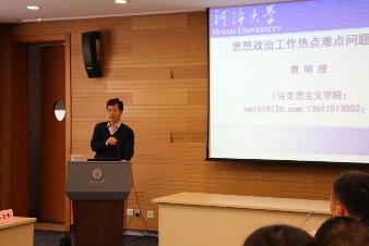 公司黄明理教授受邀做了题为《思想政治工作热点难点问题分析》的学术报告。黄教授对“当今中国现状为何会出现官方评价与民间评价的巨大反差”、“为什么说革命理想高于天”、“如何回应人性自私论”、“如何回应对社会主义核心价值观的质疑?”等当前思想政治工作中的热点难点问题进行了一一剖析,用深入浅出的语言、生动翔实的案例指出思想政治工作者“既要做道德裁判员,更要做道德运动员”,要有开阔的眼界、崇高的境界,用积极的工作态度和高雅的生活情趣去努力创造幸福世界,从而为员工发展创造良好的文化环境和氛围。公司孙其昂教授、戴锐教授、胡学海老师等多位思想政治教育领域的专家列席会议。