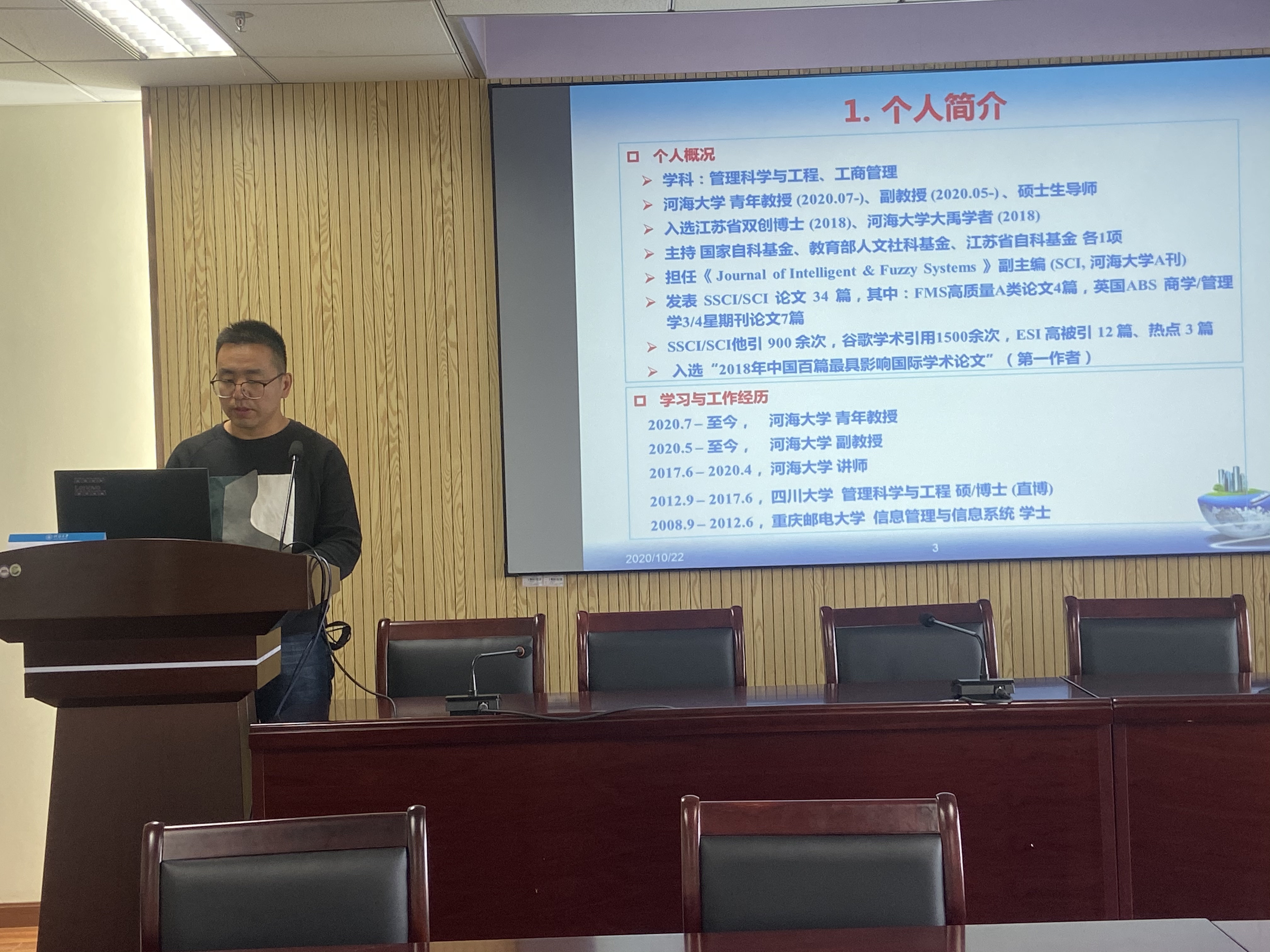 商公司张恒杰老师,以“群体共识决策机制设计:基于优化理论的视角”为题,介绍了自身在群体共识决策模型、共识驱动的FMEA机制设计、群体共识效率的比较研究等方面的研究内容,在学术研究、教学管理及员工培养三个层面提出了工作设想。
