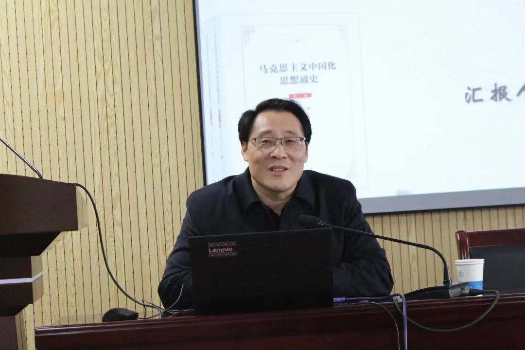 孙建华教授以“马克思主义中国化思想通史研究的几个问题”为核心,紧紧围绕“马克思主义中国化通史的基本范畴”“马克思主义中国化通史的理论架构”“马克思主义中国化通史的逻辑分期”三个方面展开论述。首先,孙建华教授从“马克思主义中国化”“马克思主义中国化思想”“马克思主义中国化命题”“中国化的马克思主义”和“社会思潮”五个角度简单介绍了马克思主义中国化思想通史的基本范畴。在谈及社会思潮时,他指出,当前社会处于“两个一百年”的过渡时期,社会思潮十分活跃,考察和研究社会思潮势在必行。随后,孙建华教授对比分析了马克思主义中国化思想史与马克思主义中国化史。他强调,二者在范畴内涵、团队建设和研究对象上均呈现出显著的差异,不能混同。最后,孙建华教授对马克思主义中国化的逻辑分期进行了系统的阐释。他认为,根据不同的划分依据可以将马克思主义中国化的历史脉络界定为不同的发展阶段,马克思主义中国化思想发展是历史与逻辑相统一、理论与实践相结合的逻辑进程。