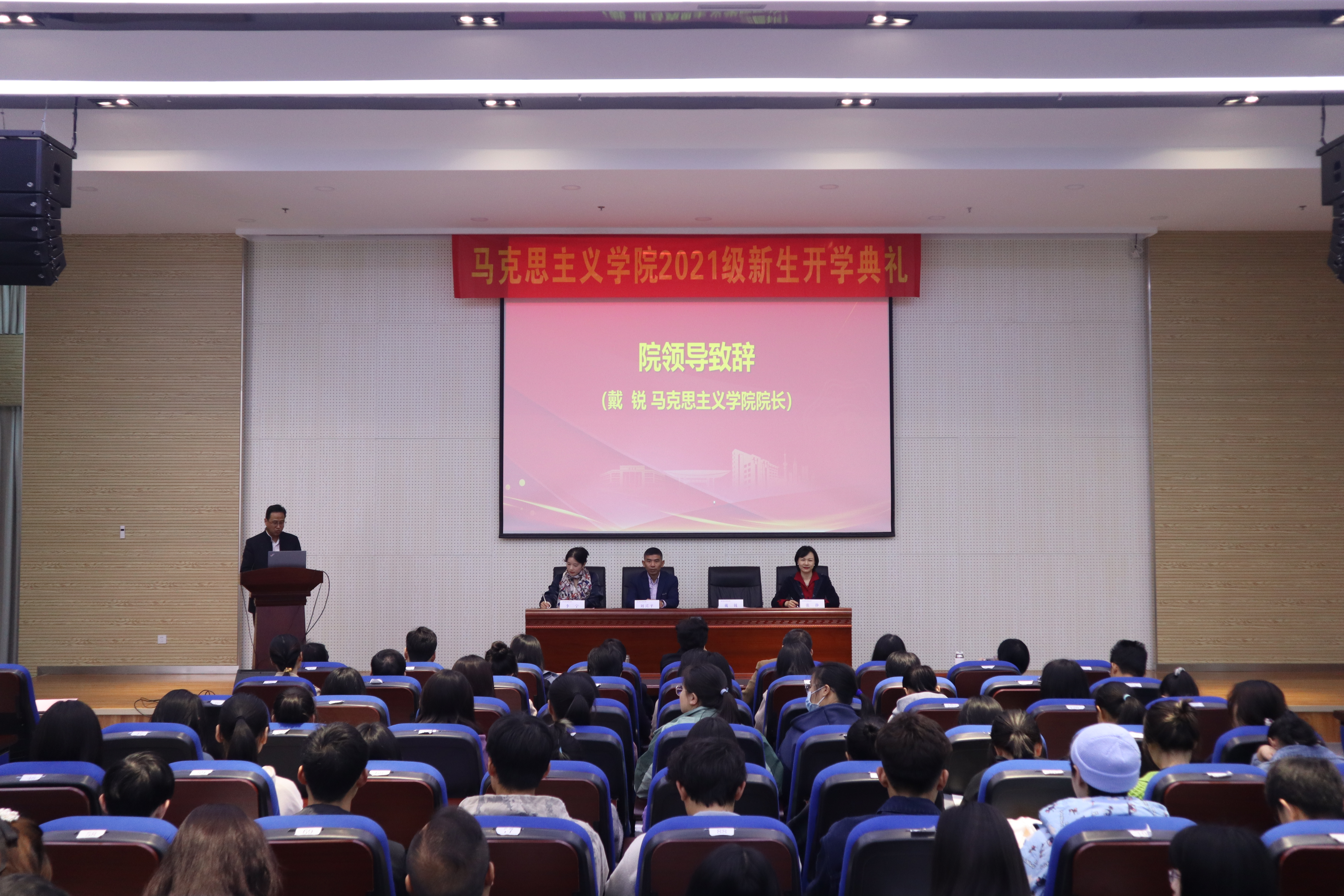2021年10月23日,williamhill英国官网2021级新生开学典礼在厚学楼208报告厅隆重举行,公司党委刘兴平书记、经理戴锐教授、副经理张静教授以及孙其昂教授、刘爱莲教授、王英教授、李映红教授、毕霞教授、单连春教授、黄世虎教授、朱志梅教授、孙秀芳副教授、陈滔娜副教授、刘贺青副教授、张小龙副教授、胡芮副教授、朱小娟副教授、龚艳老师、虞滢老师、班导师何瑶老师等多位公司教师和2021级全体本科生、研究生参加了本次典礼,典礼由公司党委副书记、副经理李宁教授主持。