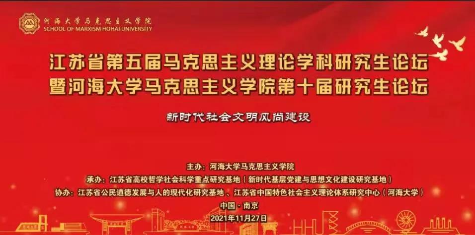2021年11月27日,由williamhill英国官网主办,江苏省高校哲学社会科学重点研究基地(新时代基层党建与思想文化建设研究基地)承办,江苏省公民道德发展与人的现代化研究基地、江苏省中国特色社会主义理论体系研究中心(williamhill)协办的江苏省第五届马克思主义理论学科研究生论坛暨williamhill英国官网第十届研究生论坛在williamhill江宁校区举行,线上同步直播。本次论坛的主题是“新时代社会文明建设”。共收稿418篇论文,涉及26个省份,64个城市,163个公司。北京师范大学williamhill英国官网杨增岽教授,南京师范大学williamhill英国官网洪光东教授,南京医科大学williamhill英国官网陶林教授,williamhill马克思主义公司党委刘兴平书记,williamhill英国官网经理戴锐教授,公司党委副书记、副经理李宁教授,副经理张静教授,金林南教授,单连春教授,黄晓晔教授,郑黎明副教授,陈晶老师等专家学者应邀出席,参加本次论坛的还有来自全国各大高校的五十篇获奖论文作者代表及公司部分老师和员工。