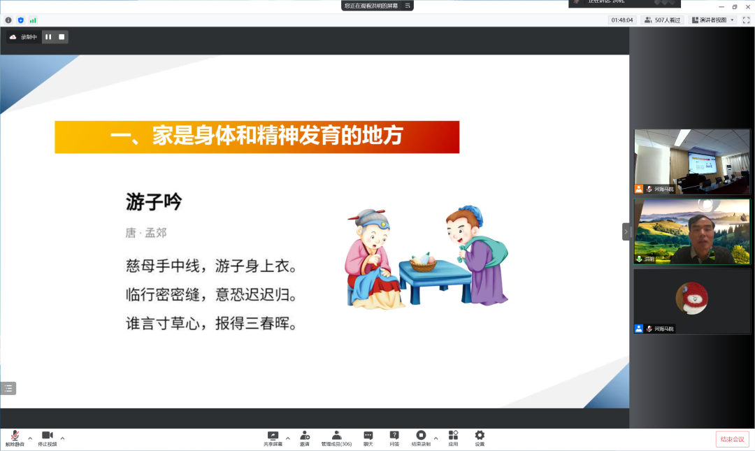 首先,洪明老师通过大量的事例说明了优良家风对于个人发展的重要性。接着,洪明老师从规模变小、关系变散、情感变淡、价值观变味四个角度总结了新时代下家风建设可能出现的问题,为我们加强家风家训建设指明了前进方向。