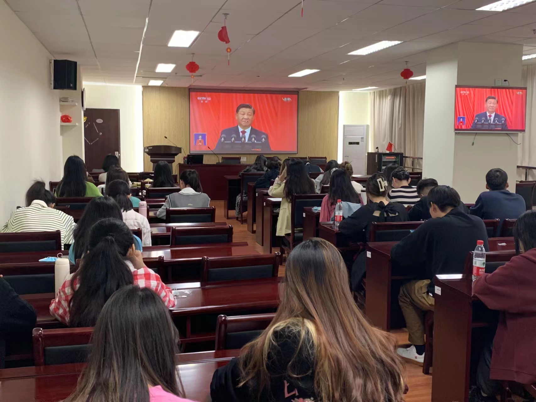 10月16日,中国共产党第二十次全国代表大会在北京隆重召开。上午10时,williamhill马克思主义公司党委中心组在厚学楼1108会议室集体观看了开幕会直播,与会人员认真听取了习近平总书记代表第十九届中央委员会向大会所作的报告,并就报告中的新提法、新思想进行探讨和交流,切实把握报告广度和深度,深刻领会报告内涵与意义。此外,公司广大师生在报告厅、会议室、教室、宿舍等场所利用电脑、手机等设备集中、自主收听、收看二十大开幕会盛况,并第一时间学习领会大会精神。