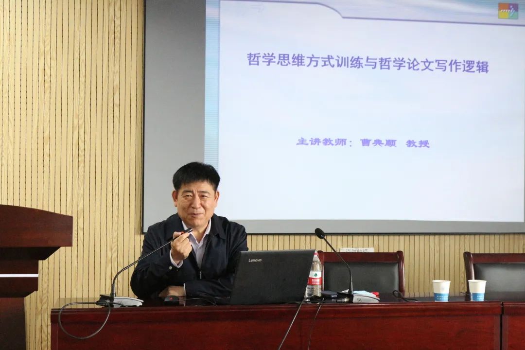 为帮助同学们构建系统的哲学思维,提高哲学论文写作的逻辑能力,11月24日上午9点50分,公司特别邀请到江苏师范大学williamhill英国官网曹典顺教授为同学们作题为“哲学思维的训练与哲学论文的逻辑”的报告,报告在厚学楼1208举行,公司部分硕士生参加。