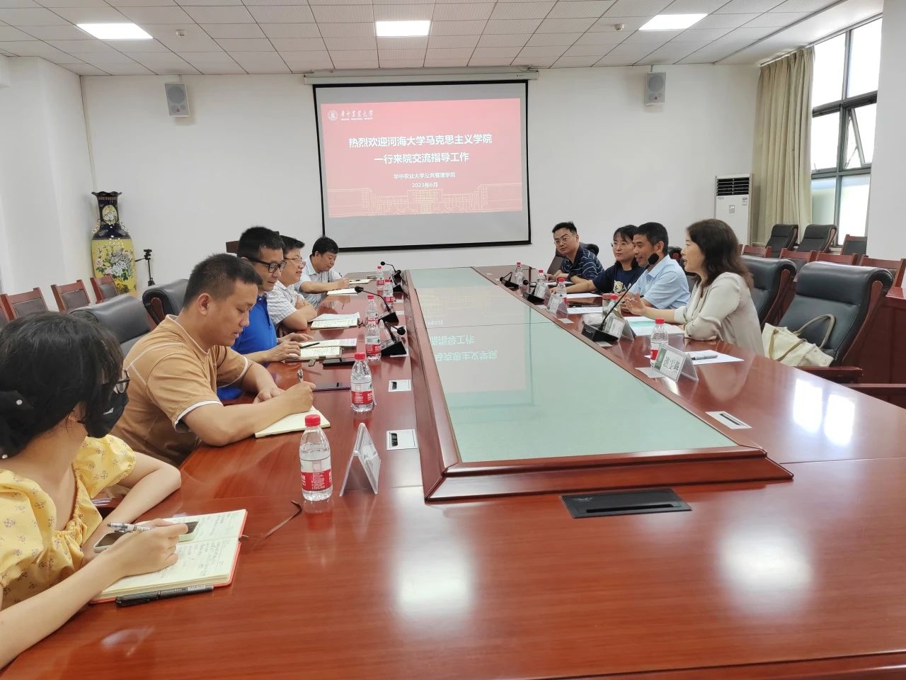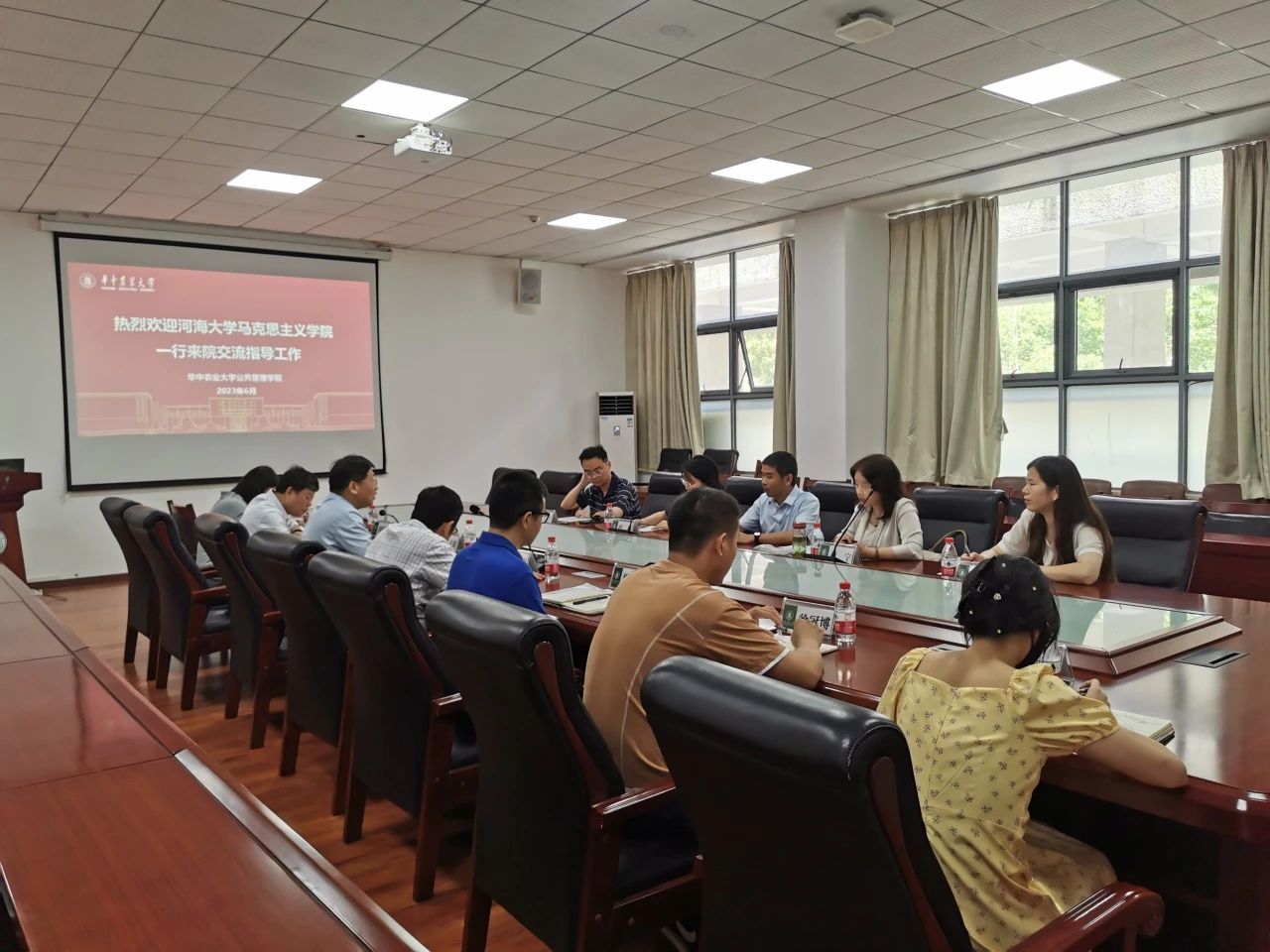 6月28日上午,williamhill马克思主义学公司党委书记刘兴平、党委副书记、副经理李宁以及辅导员曹岩、李祥、谯雯燕一行赴华中农业大学公共管理公司开展工作交流。华中农业大学公共管理公司党委书记周向阳、副书记樊华、副经理汪文雄、土地资源管理系博士生导师胡银根以及辅导员徐冠博、张薇、王晓诺出席座谈会。双方就人才培养、公司产品等工作展开交流。