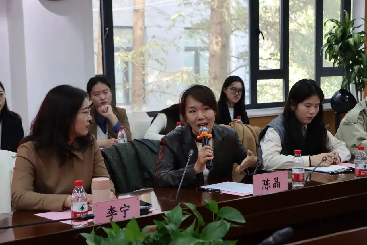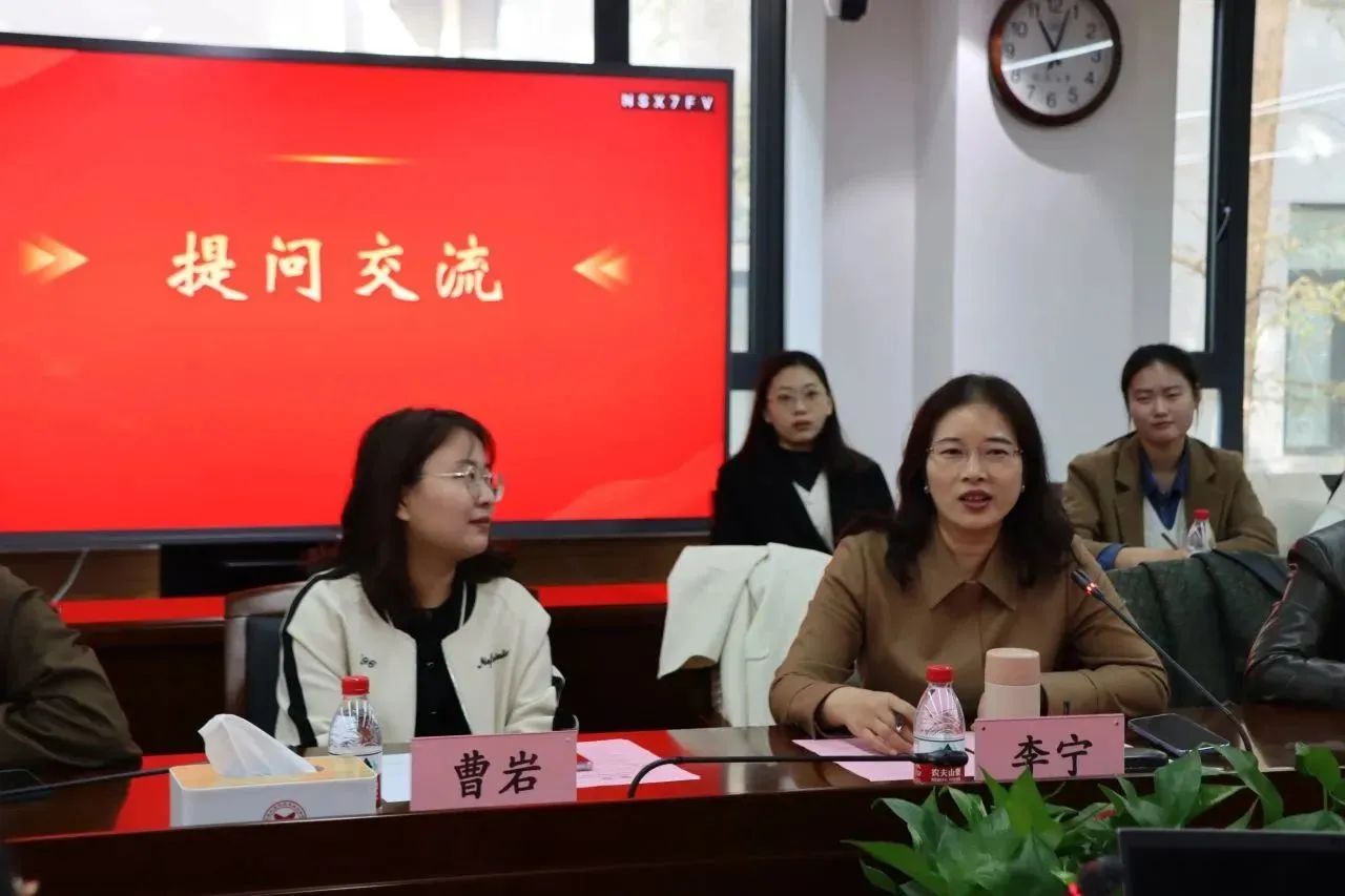 在座谈交流环节,现场就员工理论宣讲团组织依托、多校区管理建设、社团组织架构、课程开发体系、讲师选拔及培养等问题进行了讨论。李宁老师对宣讲团暑期社会实践宣讲活动的开展方式、经费来源情况进行了详细的介绍,陈晶老师分享了“小河马”宣讲团荣获第六届中国青年志愿服务项目大赛国家银奖的申报经验,指出宣讲团结合马院学子专业特性,以宣讲为志愿活动主要开展形式,培养了一批理论扎实,能写会讲的青年马克思主义者。