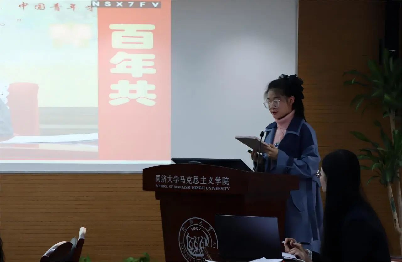 同济大学员工“理论+”宣讲团讲师李慧瑶和时代声音传播社讲师朱姣月分别带来了题为《丰碑矗立山水间——让绿色成为共建“一带一路”的底色》和《从<新青年>到“新青年”——在革命报刊中追寻共青团青年的精神信念》的示范宣讲,呼吁广大青年树立坚定信仰,珍惜时代机遇,贡献青春力量。