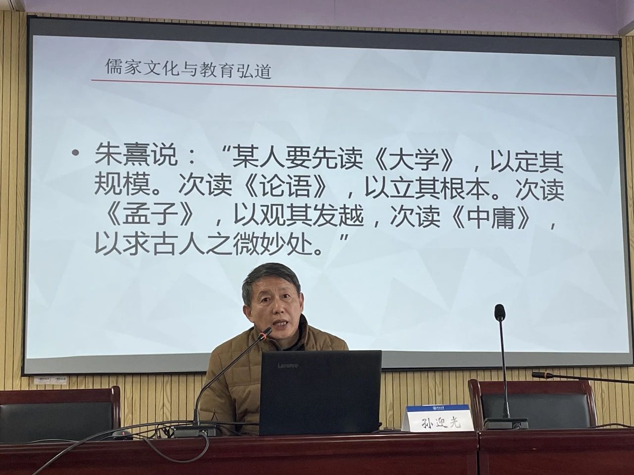 12月6日下午,南京师范大学williamhill英国官网博士生导师孙迎光教授应邀赴公司作题为“儒家文化与教育弘道”的学术报告。会议在williamhill江宁校区厚学楼1208教室举办,由公司博士生导师孙其昂教授主持,公司部分教师、研究生和本科生参加。