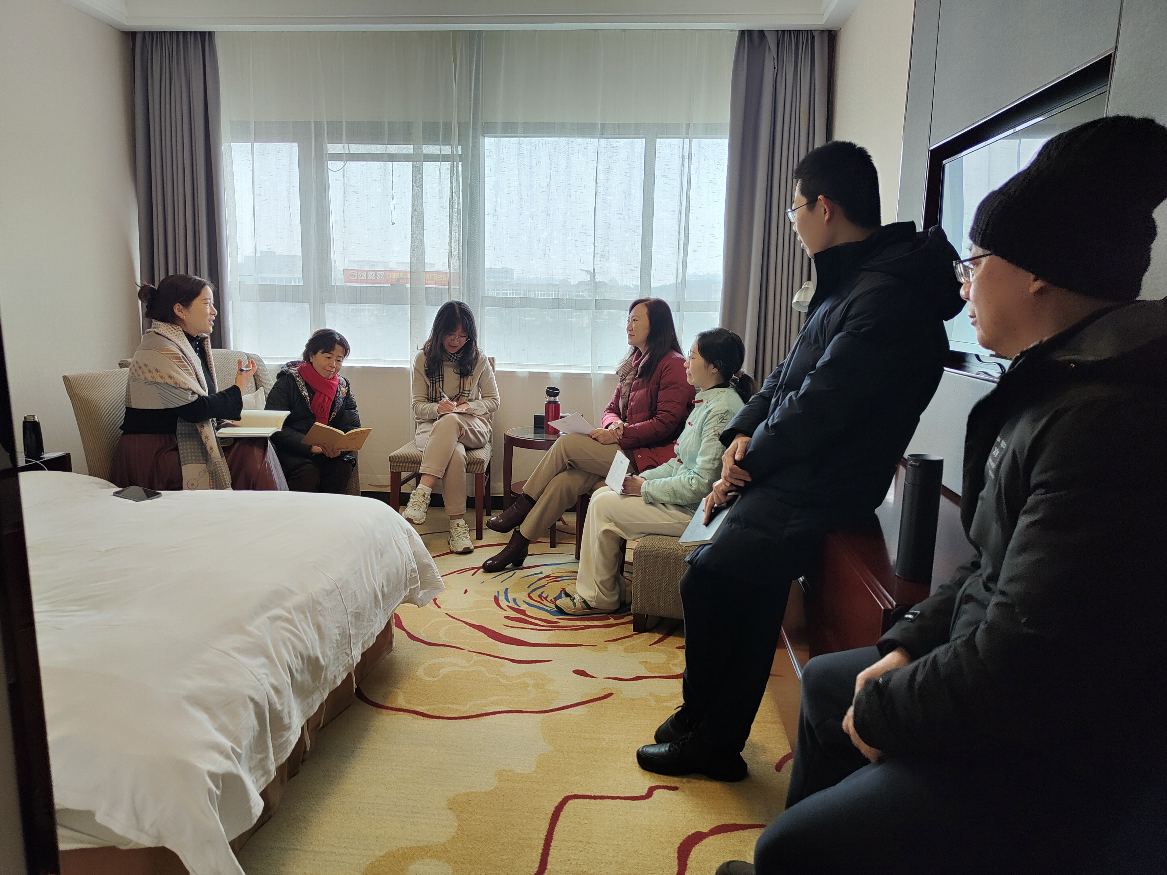 20日上午办理好入住手续后,全体老师在教研室主任孙秀芳副教授的主持下,组织一行教师在宾馆进行了一个多小时的课程交流和总结活动。围绕课程实践中暴露的问题、课程考核、试卷题型、青年教师的成长等方面,请李宁书记、李栗燕副经理以及教学督导毕霞教授进行指导和建议,与会老师们也畅所欲言,纷纷表达了在日常教学中的体会和建议。
