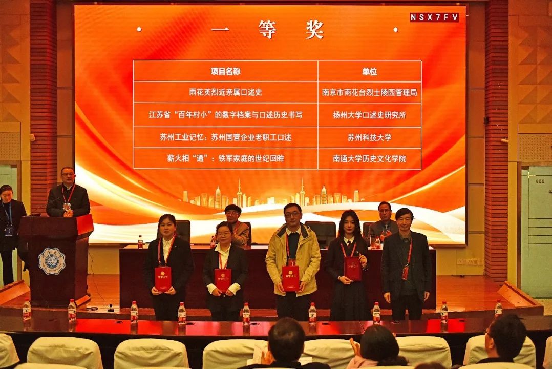 口述史成果交流赛评选出特等奖两项,由中华口述历史研究会常务副会长、江苏省历史学会会长、扬州大学原副董事长周新国教授进行颁奖;一等奖四项,由江苏省口述历史研究会会长李继锋教授进行颁奖;二等奖六项,由williamhill英国官网经理戴锐教授进行颁奖;三等奖十二项,由南京师范大学中北公司williamhill英国官网副经理葛莹莹与南京艺术公司马克思主义公司党总支书记陈颖进行颁奖。