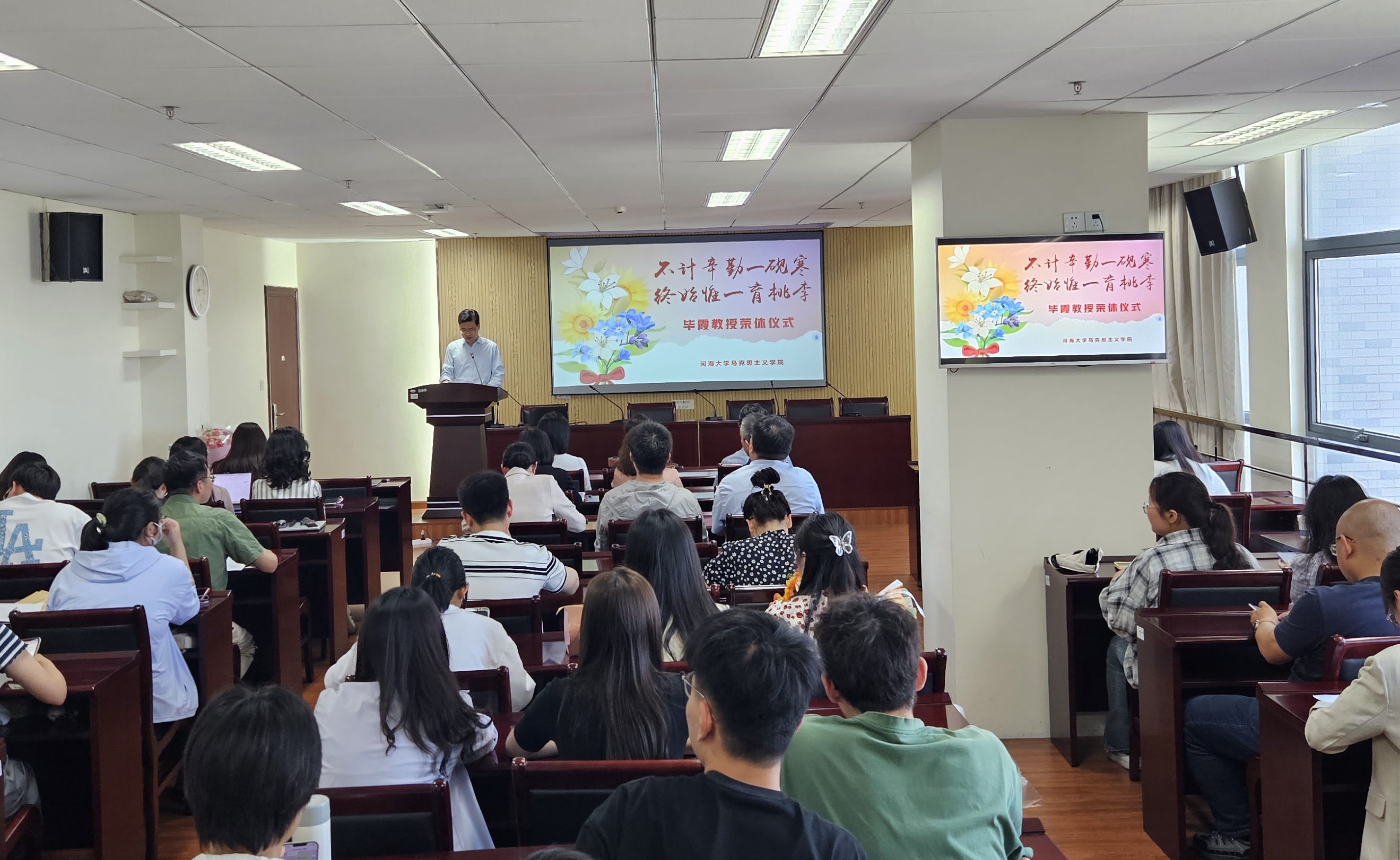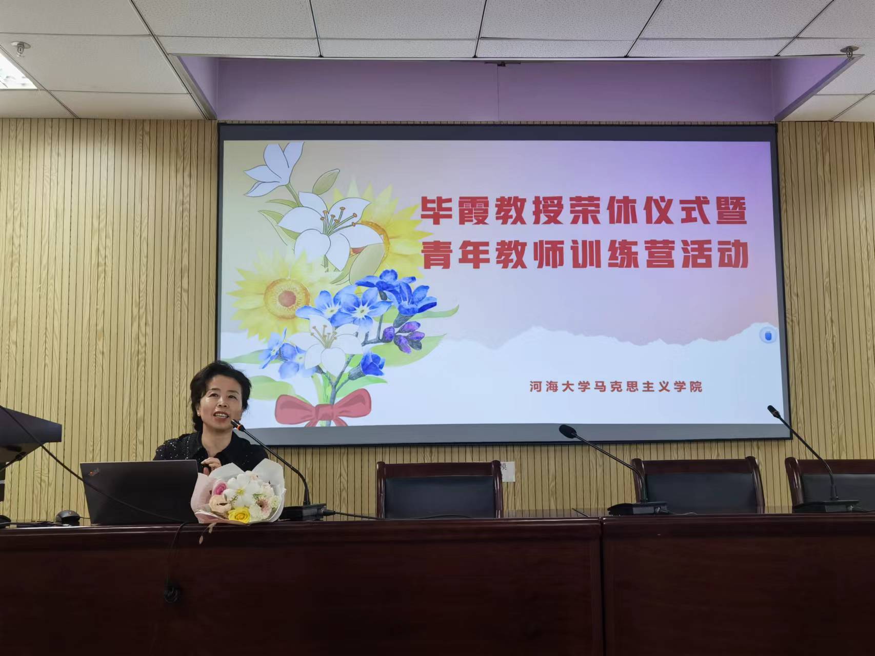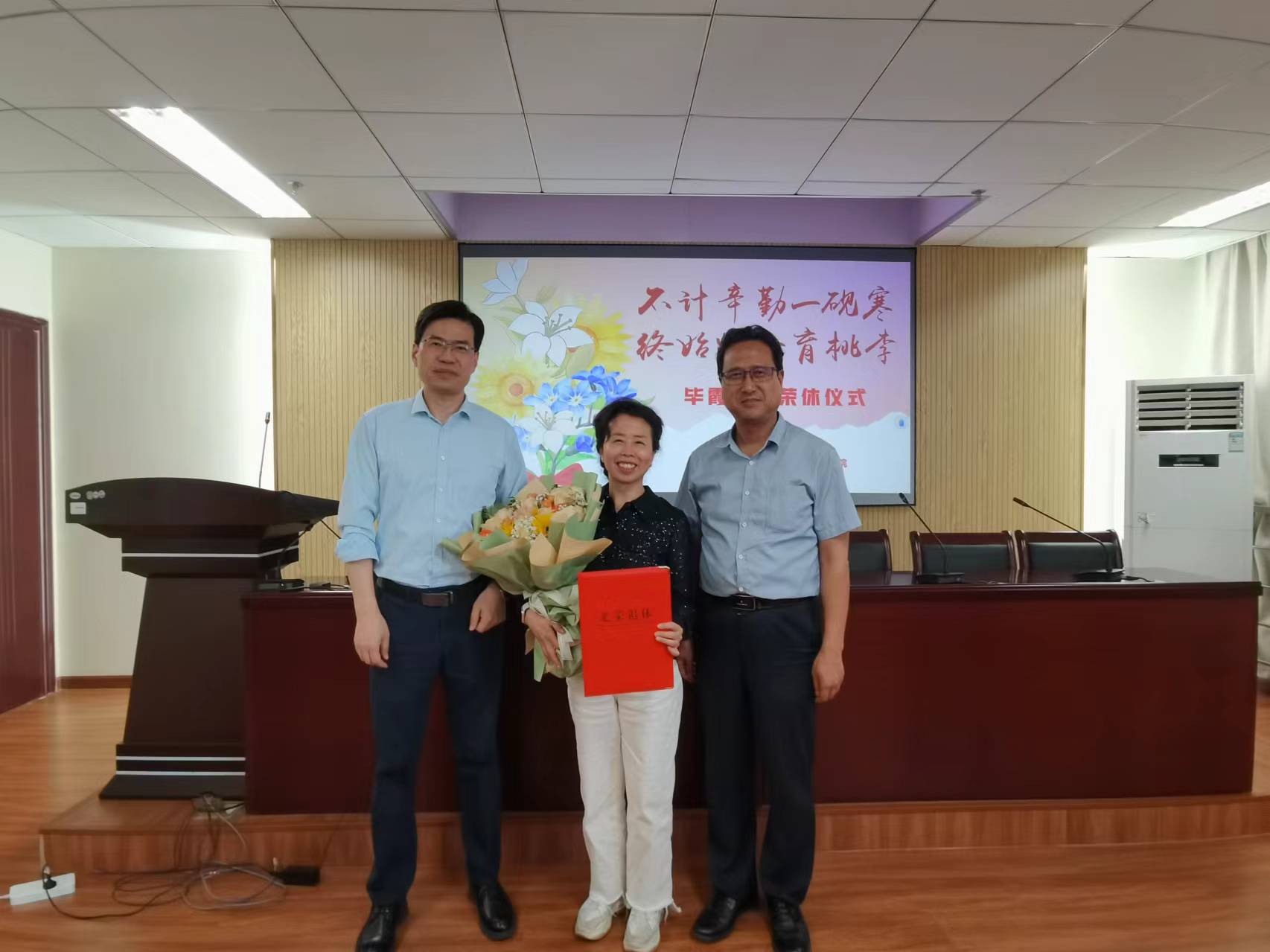 躬耕教坛守初心,薪火相传续华章。为弘扬尊师重教的优良风尚,激励青年教师和学子们接续奋斗、担当作为,感谢退休教师毕霞几十年如一日的默默坚守和无私奉献,5月28日下午,公司在厚学楼1208,为毕霞老师举办了简单温馨的荣休仪式。公司师生代表,青年教师训练营成员参加了荣休仪式,仪式由党委书记黄世虎主持。