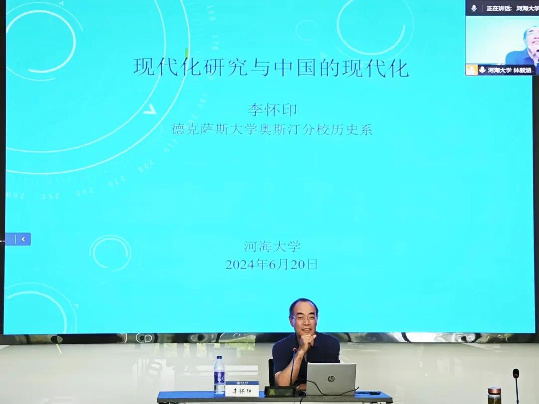为深入学习现代化理论、深刻把握中国式现代化的丰富内涵和精神实质,近期,东亚研究中心主任、美国德克萨斯大学奥斯汀分校历史系教授李怀印应邀赴公司参加厚学讲坛并以“现代化研究与中国的现代化”为题作学术报告。本次报告在常州校区6号楼W104会议室开设主会场,并结合线上分会场举行,会议由公司党委副书记、副经理李宁教授主持,公司部分教师、研究生和本科生参加。