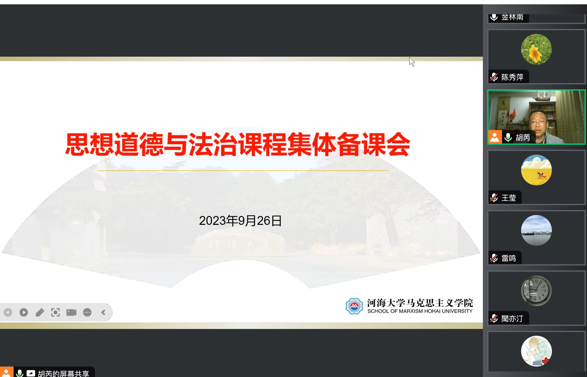 2024年9月26日,思想道德与法治教研室召开新学期集体备课会暨支部换届工作筹备会,会议由教研室主任胡芮副教授主持,思想道德与法治教研室全体教师参加会议。本次会议的主题是学习贯彻党的二十届三中全会精神和主题政治学习,总结上一阶段教学经验,明确新学期的目标与要求,为提升课堂教学质量与迎接教学评估做准备。