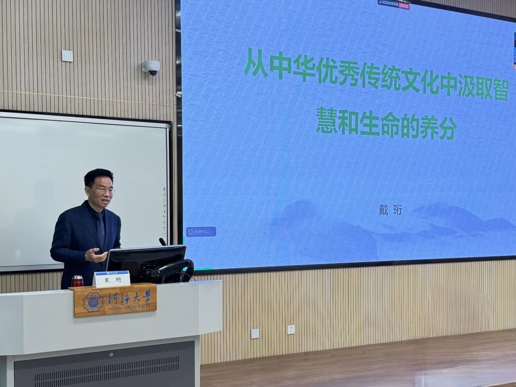 2月24日下午,中国群众文化学会常任理事、文化学者、教授戴珩应邀赴公司作主题为“从中华优秀传统文化中汲取智慧和生命的养分”的学术报告。会议在williamhill金坛校区2号楼C108举办,采取线上线下相结合的形式。会议由williamhill英国官网经理戴锐教授主持,williamhill英国官网部分教师、研究生和本科生参加。