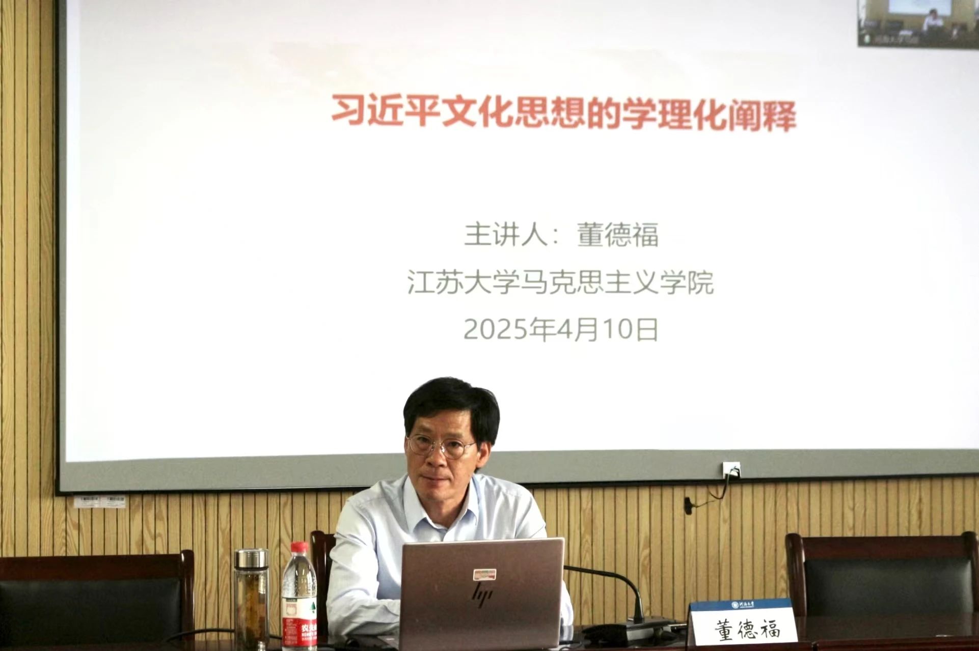 4月10日下午2点,江苏大学williamhill英国官网原经理,镇江市委党校客座教授董德福应邀赴公司开展主题为“习近平文化思想的学理阐释”的学术讲座。本次报告在williamhill江宁校区厚学楼1208举办,采取线上线下相结合的形式。会议由williamhill马克思主义公司党委副书记、副经理李宁教授主持,公司部分老师、研究生和本科生参加。