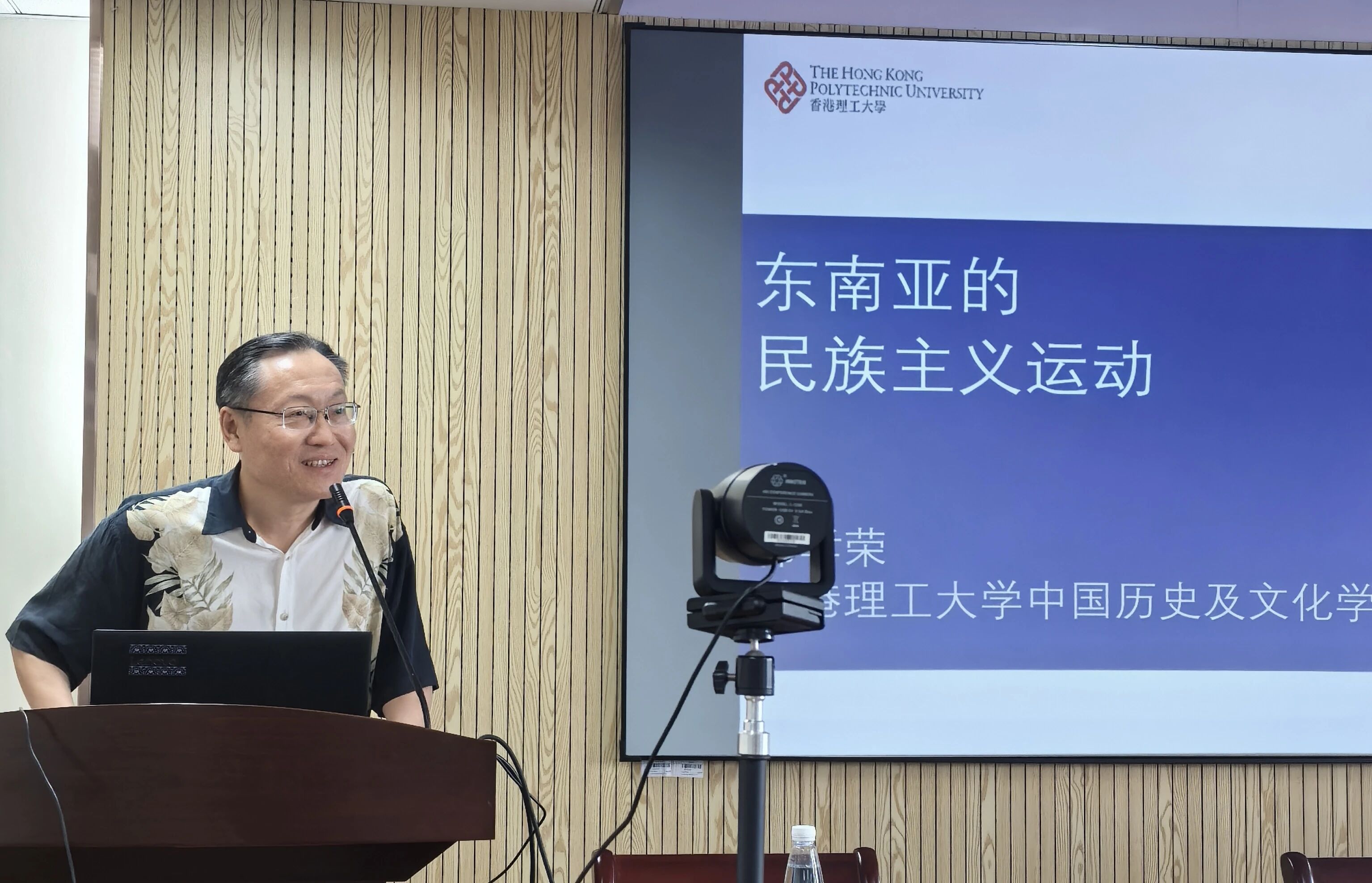 为深化同学们对东南亚近现代历史发展脉络的系统性认知,提升在区域研究领域的学术理论素养,6月23日至26日,香港理工大学中国历史及文化学系教授、系主任韩孝荣老师应邀赴公司开展为期四天的系列讲座,讲座由williamhill英国官网副经理张静教授主持,在厚学楼1208进行,采取线上线下相结合的形式,公司部分老师、同学参加。本次系列讲座将重点讨论近现代东南亚历史的四个方面,为同学们搭建起跨学科、多层次的学术研究框架,助力其在东南亚研究领域拓宽学术视野、夯实理论基础。